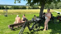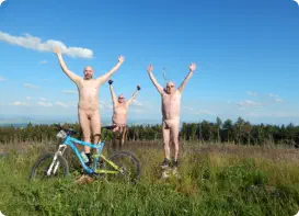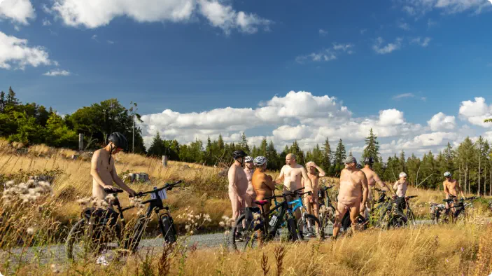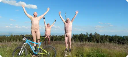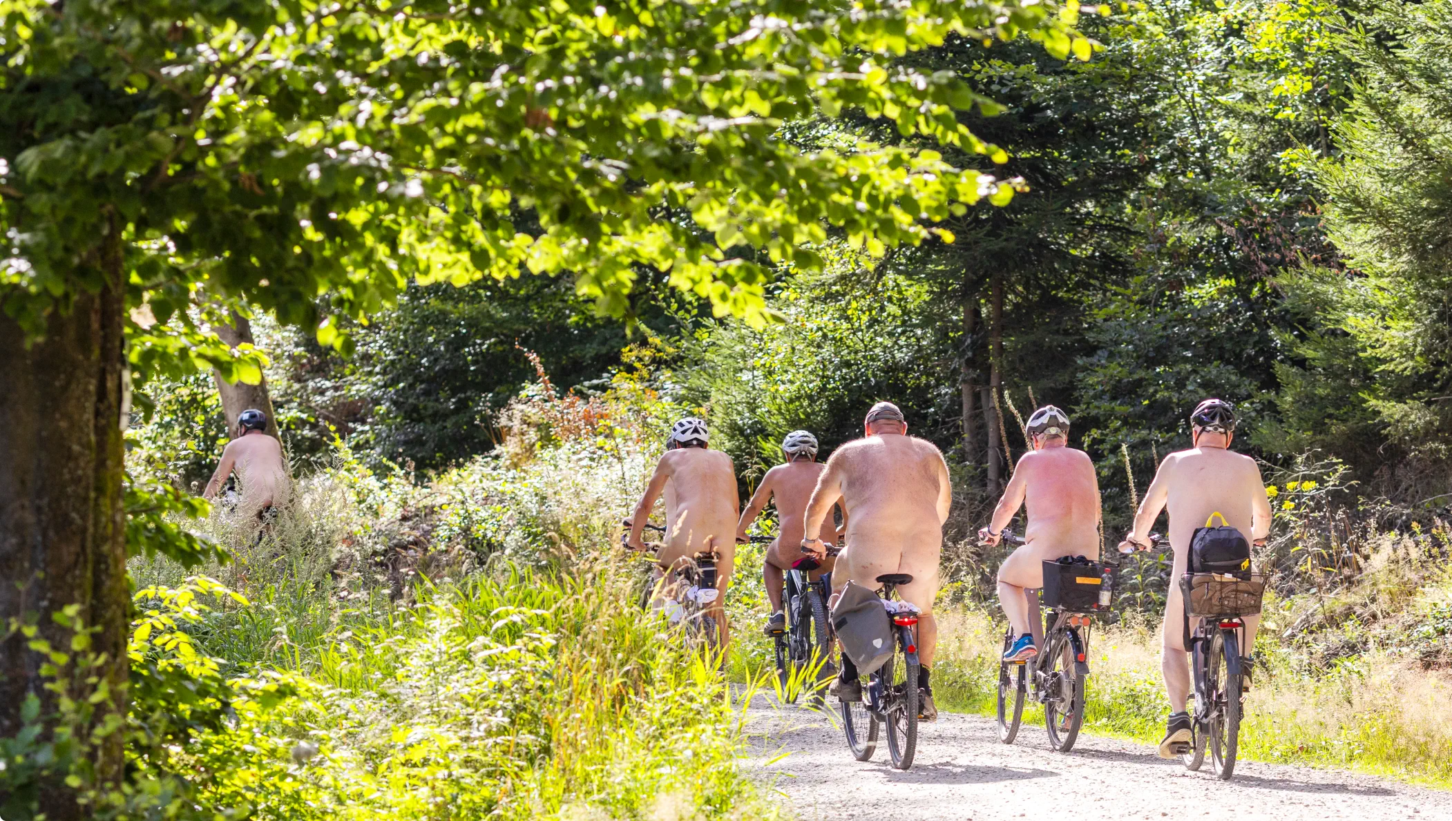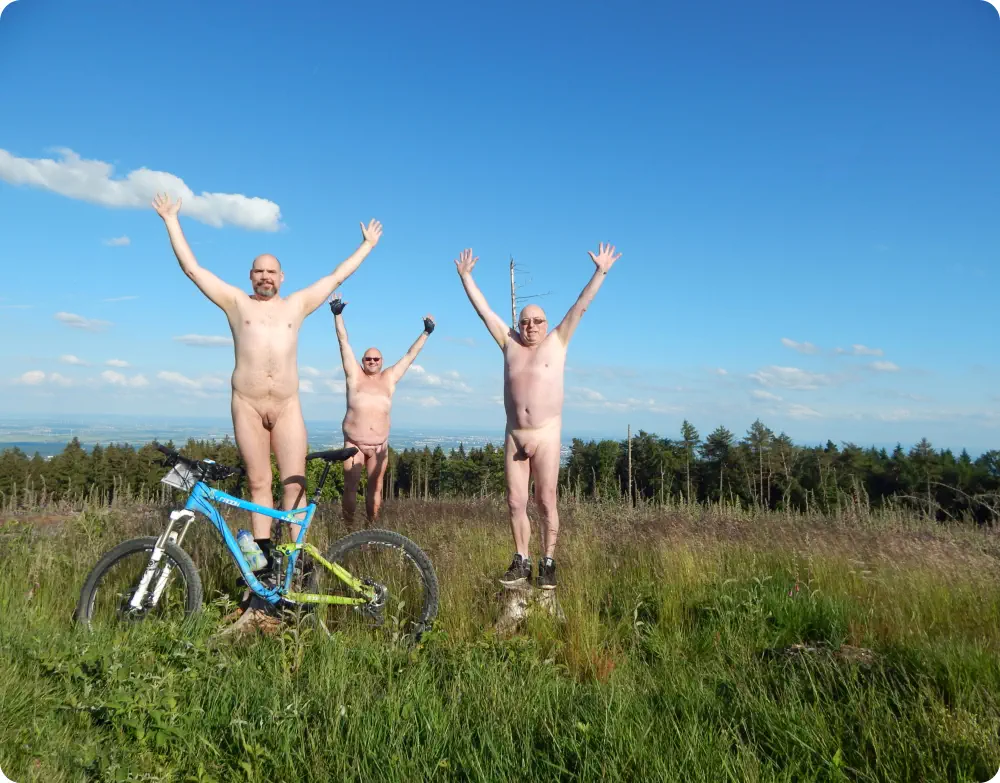 Wir sind eine Gruppe von Naturisten, die gerne in der Natur nackt Rad fahren.
