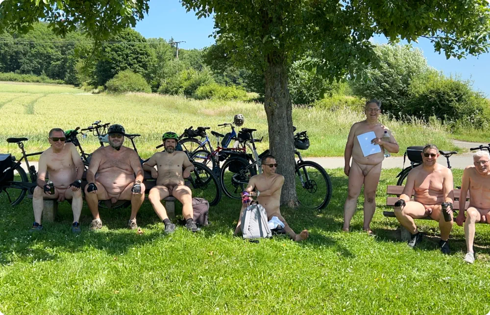 Am06.06.2024 fand endlich mal wieder eine Tour bei herrlichem Sonnenschein statt. Und wie man sieht, hatte man richtig viel Spaß!Falls Du uns ebenfalls begleiten möchtest, dann melde Dich einfach. Gerne darfst Du uns auch textil begleiten, wir denken aber Du wirst Dich ganz schnell deiner Klamotten entledigen, denn eine nackte Radtour ist einfach herrlich! Ralf