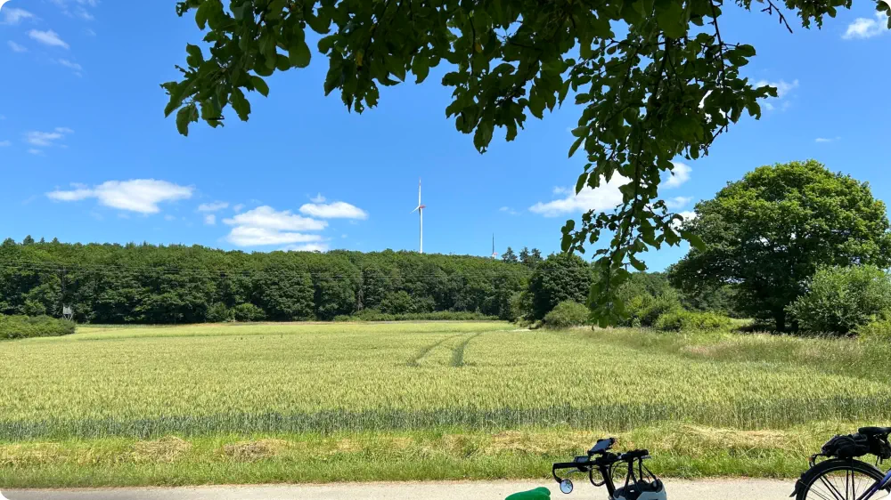 Fronleichnam 2025 Dombachtal An Fronleichnam war die Taunus-Nackt-Biker-Gruppe im Hinter-taunus bei Waldems ins Dombachtal unterwegs. Von der Tenne aus ging es gleich nackt hoch zu den Windkraftanlagen über dem oberen Dombachtal und dann hinunter über Dombach ins Tal. Die Tour war etwas improvisiert, da wir sie schon länger nicht mehr gefahren sind. Wir waren zu siebt unterwegs und hatten zwei neue Mitfahrer dabei. Natürlich alles nackt bei herrlichem Sonnenschein und sehr freundlichen Begegnungen mit textilen Wanderern.
